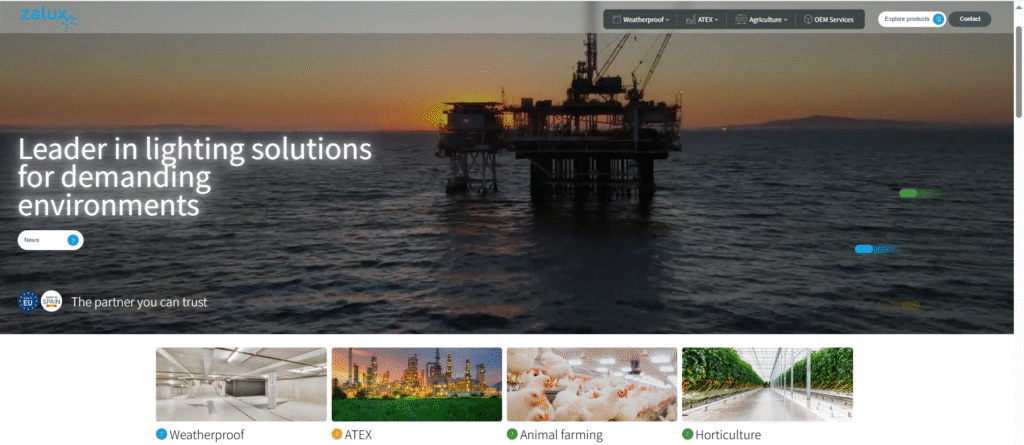 ZALUX is known for heavy-duty LED fixtures designed for harsh agricultural environments. Their products are widely used in pig houses and dairy barns where ammonia exposure and high humidity are common.