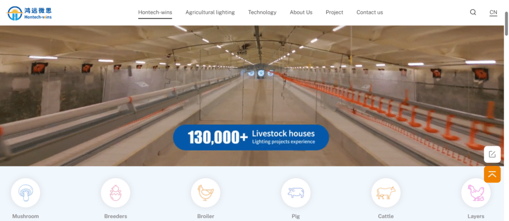 Hontech-Win focuses on poultry lighting solutions and has become a major supplier in Asia. Their flicker-free dimming systems and waterproof LED tubes are widely used in commercial poultry houses.